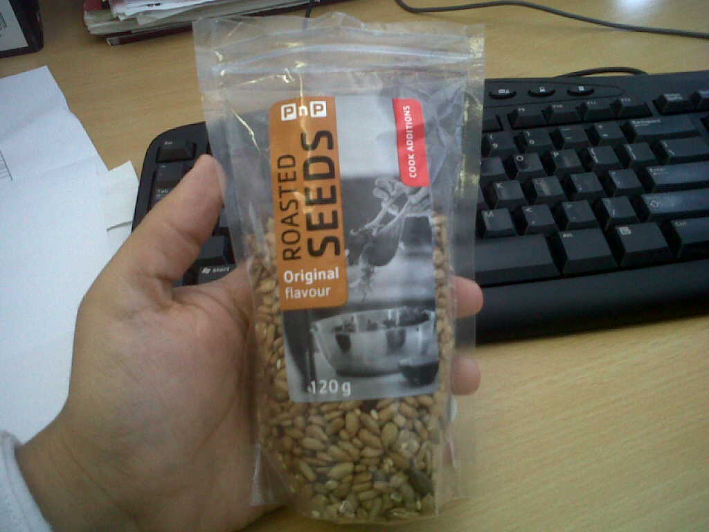 These unflavoured roasted nuts (available at all Pick n Pays) is absolutely a-ma-zing!!! I've had them sprinkled over salad to add extra crunch. They work just as well as the daily 4pm snack! I keep them on my desk and just grab a handful when I want something "chewy" ;)